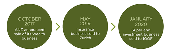 The ownership change of ANZ’s superannuation and investment business to IOOF Holdings Limited (IOOF) occurred on 31 January 2020.